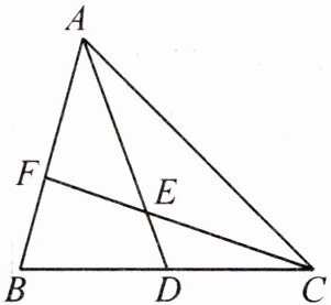 5. 如图,在 $ \triangle ABC $ 中,$ AD $ 为 $ BC $ 上的中线,点 $ E $ 在 $ AD $ 上,且 $ \frac{DE}{AE} = \frac{1}{3} $,射线 $ CE $ 交 $ AB $ 于点 $ F $,求 $ \frac{AF}{FB} $ 的值.