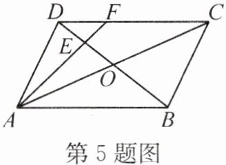 5. 如图,在 $ □ ABCD $ 中,$ AC $、$ BD $ 相交于点 $ O $,$ E $ 为 $ OD $ 的中点,连结 $ AE $ 并延长,交 $ DC $ 于点 $ F $,则 $ DF:FC $ 等于( )