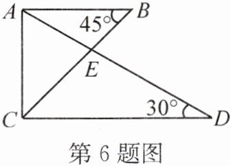 6. 将一副三角尺按如图所示方式叠放在一起,则 $ \dfrac{BE}{EC} $ 的值是____。