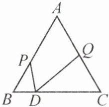 8. 如图,在等边三角形 $ ABC $ 中,$ AB = 4 $,$ P $ 是边 $ AB $ 上一点,$ BP = \dfrac{3}{2} $,$ D $ 是边 $ BC $ 上一点(点 $ D $ 不与端点重合),作 $ \angle PDQ = 60^{\circ} $,$ DQ $ 交边 $ AC $ 于点 $ Q $。若 $ CQ = a $,满足条件的点 $ D $ 有且只有一个,则 $ a $ 的值为( )