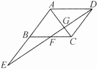 7. 如图,在 $ □ ABCD $ 中,连结对角线 $ AC $,延长 $ AB $ 至点 $ E $,使 $ BE = AB $,连结 $ DE $,分别交 $ BC $、$ AC $ 于点 $ F $、$ G $。若 $ BC = 6 $,$ DG = 4 $,求 $ FG $ 的长。