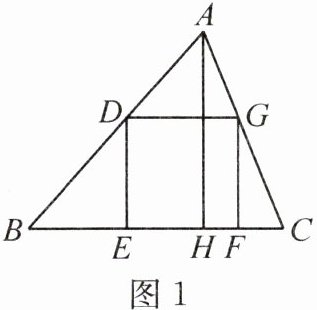 例 3 [2024 秋·眉山洪雅县期中]在$\triangle ABC$中,$BC = 12$,高$AH = 8$,点$D$在边$AB$上,点$E$、$F$在边$BC$上,点$G$在边$AC$上。