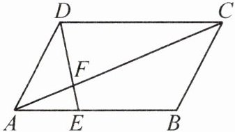 例 2 如图,在平行四边形$ABCD$中,$E$是线段$AB$上一点,连结$DE$,交对角线$AC$于点$F$。若$\frac{AE}{EB} = \frac{2}{3}$,则$\frac{S_{\triangle AEF}}{S_{\triangle CDF}} =$______。