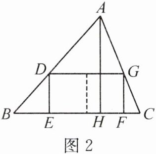 (2)如图 2,当四边形$DEFG$是矩形,且此矩形可分割成两个并排放置的正方形时,求矩形的长和宽。