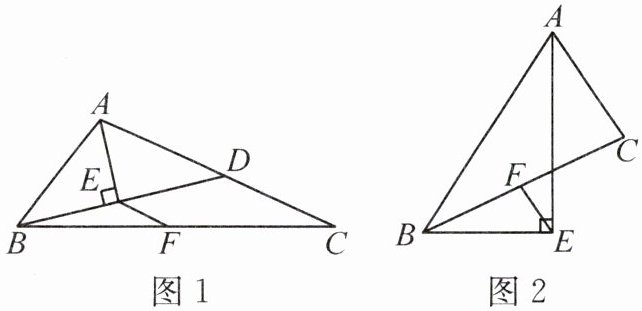 (1)如图1,$BE$的延长线与边$AC$相交于点$D$,求证:$EF = \frac{1}{2}(AC - AB)$;