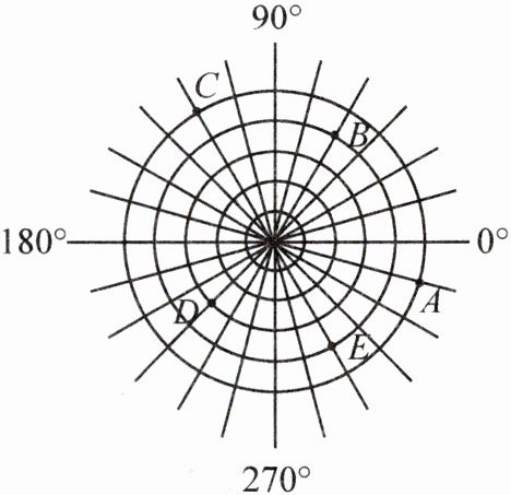 例1 [2024秋·常州期末]如图,雷达探测器在一次探测中发现五个目标。若目标$A$、$B$的位置分别记为$(5,345^{\circ})$,$(4,60^{\circ})$,则目标$D$的位置记为( )