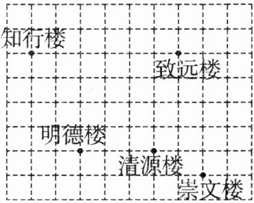 明德楼坐标:因为从清源楼$(0,0)$向西走$300m$($1$单位长度$ = 100m$),所以明德楼坐标为$(-3,0)$。