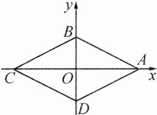 2. 如图,在平面直角坐标系中,菱形$ABCD$对角线的交点是$O(0,0)$,点$B$的坐标是$(0,1)$,且$BC=\sqrt{5}$,则点$A$的坐标是____。