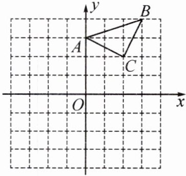 5. (模型观念)如图,在平面直角坐标系中,$\triangle ABC$ 三个顶点的坐标分别为 $A(0,3)$、$B(3,4)$、$C(2,2)$。(正方形网格中每个小正方形的边长均是 $1$ 个单位)