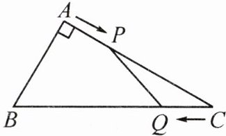 11. [2024 秋·长子县期中]如图,在$\triangle ABC$中,$\angle BAC = 90^{\circ}$,$AB = 3\mathrm{cm}$,$BC = 5\mathrm{cm}$. 点$P$从$A$点出发,沿$AC$方向匀速运动,速度为$1\mathrm{cm/s}$;同时,点$Q$从点$C$出发,沿$CB$方向匀速运动,速度为$1\mathrm{cm/s}$. 设运动时间为$t\mathrm{s}(0 < t < 4)$,当$t$为何值时,$\triangle ABC$与$\triangle PQC$相似?