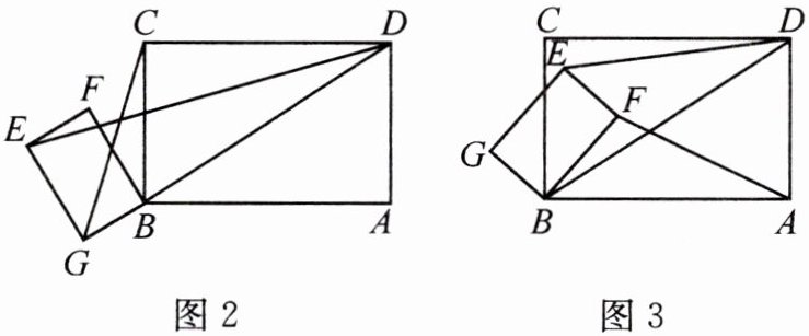 (3)如图 3,将四边形$BFEG$绕点$B$逆时针旋转,连结$AF$、$DE$. 请直接写出旋转过程中$\frac{DE}{AF}$的值.