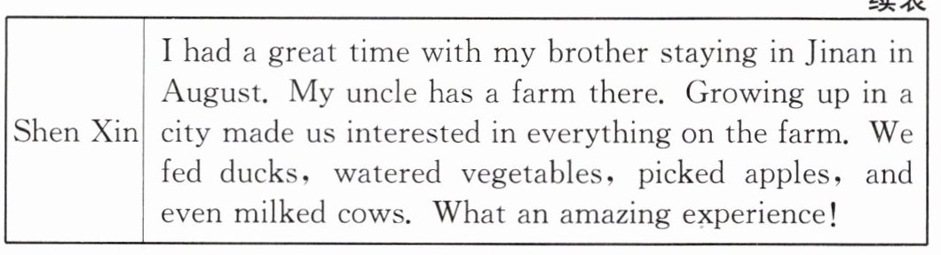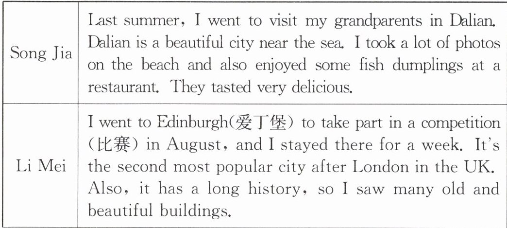1. landscape; no one wanted to leave 2. went to; saw; the Sea of Clouds; ancient buildings 3. took music lessons; a summer camp