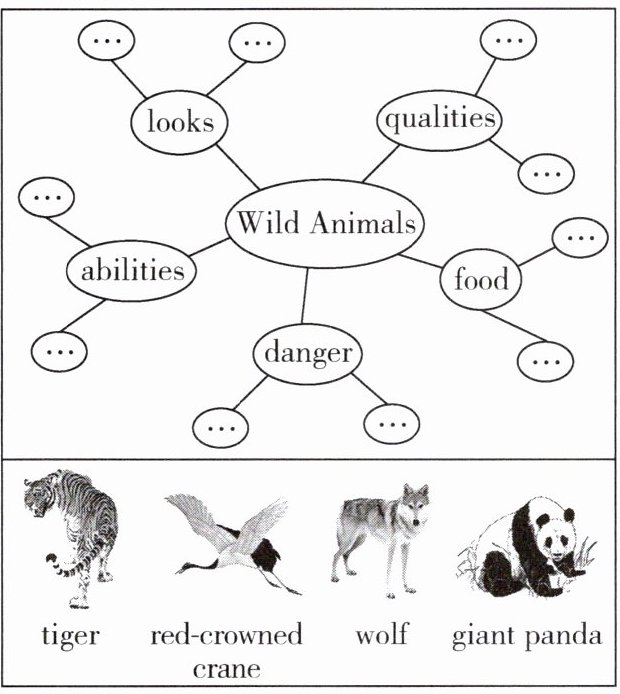1. 光明学校举行保护野生动物的实践活动,展示了很多野生动物的现状。请从下面的图片中选择一种野生动物,并根据思维导图的提示,以校学生会的名义写一封英文倡议书,以便号召更多的同学加入保护野生动物的队伍。