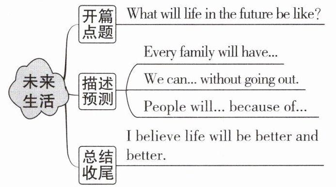 Step 3 1. be like 2. a lot of information about; most of; do some cleaning; do some shopping; see a doctor; on computers; better health care technology 3. better and better Step 5 1. Robots will help us do most of the housework, such as cooking breakfast, cleaning the floor, and washing clothes. 2. It is possible for us to do some shopping and see a doctor without going out. 3. In the future, life will be simple and happy. I can’t wait to see all these changes come true one day!