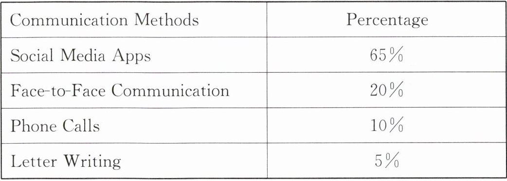 ( )1. According to Chart 1, which communication method do teenagers use most in daily life?