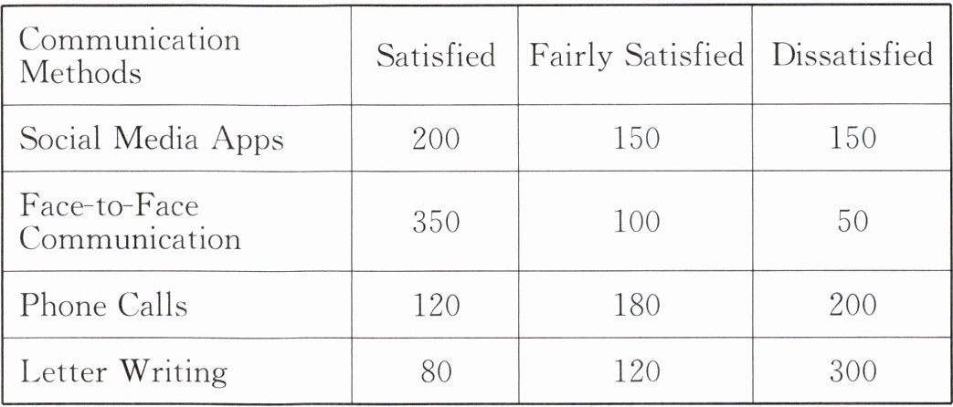 The charts below show the percentage(百分比) of middle school students using different communication methods(方式), as well as the satisfaction survey(满意度调查) on these methods.