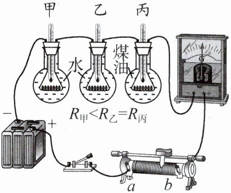 D.若通电相同时间,温度计示数高低关系为 $ T_{丙} > T_{乙} > T_{甲} $