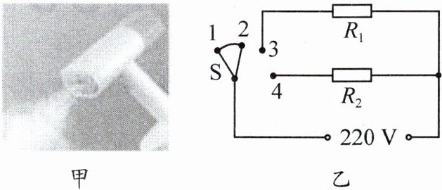11. [2023·娄底]如图甲是一款采用增压技术的挂烫机,简化电路如图乙,电源电压为 220 V,$ R_1 $、$ R_2 $ 是电热丝,$ R_1 = 55 \Omega $,$ R_2 = 110 \Omega $。开关 $ S $ 接 2、3 时处于慢热挡;开关 $ S $ 接 3、4 时处于速热挡。求: