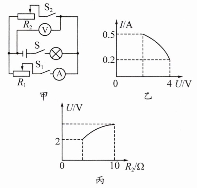 $R_{1}$的最大阻值为____$\Omega$,灯泡的额定功率