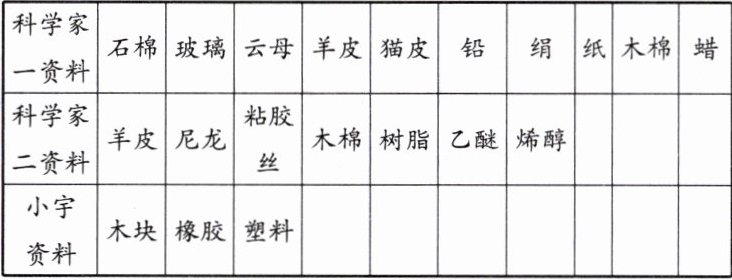 14. 小宇在做摩擦起电的实验时,想弄清不同物体相互摩擦后的带电次序,于是他先着手找了一些材料,把它们两两进行相互摩擦后,再检验其带电性质,带正电的材料放在前,带负电的材料放在后,做完实验后他又上网查找相关资料,找到了两位科学家摩擦起电得出的物质带电次序,细心的小宇把自己的资料和两位科学家的资料列成表格,做成帖子在网上发出,以供同学们相互交流,表格中任意两种物质相互摩擦时,次序在前的带正电,次序在后的带负电。请阅读表格后,回答下面问题。