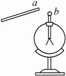 9. 如图所示,用毛皮摩擦过的橡胶棒a去接触不带电的验电器金属球b后,验电器的两片金属箔张开,则下列说法正确的是( )