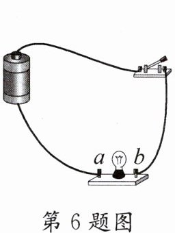 6. 如图所示的电路,此时处于______状态;当闭合开关时,小灯泡发光,此时电路处于______状态;如果用导线将接线柱a、b连接起来,电路处于______状态。