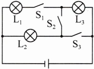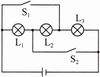 $L_1$和$L_3$_____联;当只闭合$S_2$时,灯_____
