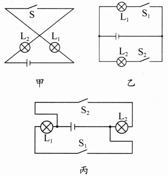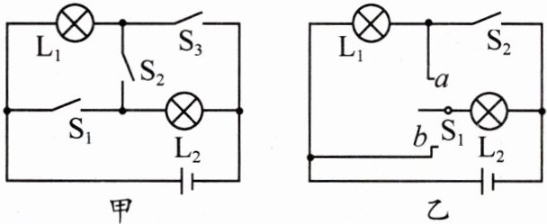 时,两灯并联;图乙中,当单刀双掷开关$S_1$和