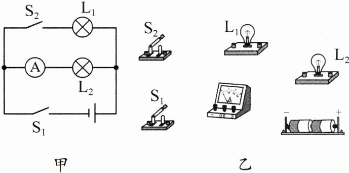 12. 请根据如图甲所示的电路图连接图乙实物图,要求导线不能交叉,电流表使用0~0.6 A量程。