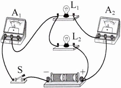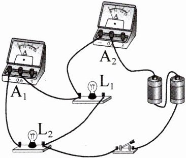 9. [2022·菏泽]关于如图所示的电路有以下判断:①L₁和L₂两灯泡串联;②L₁和L₂两灯泡并联;③电流表A₁测灯泡L₁的电流;④电流表A₂测电路中的总电流。其中正确的有( )