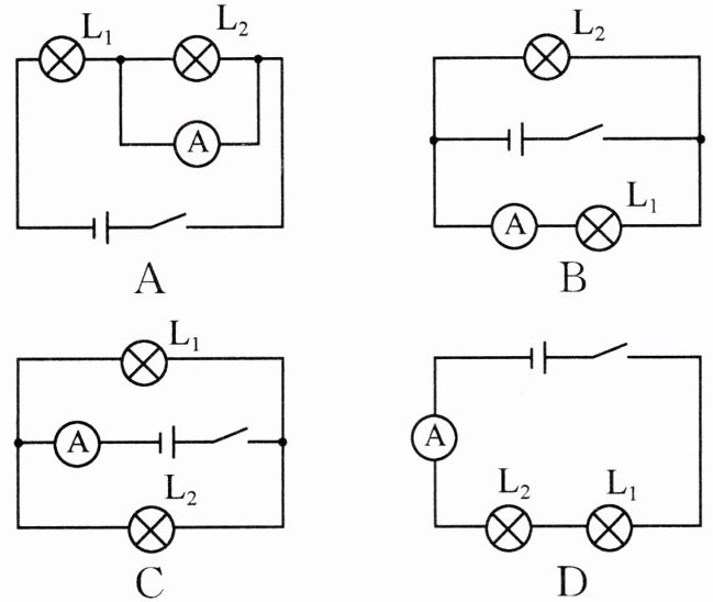 8. [2023·泰安]下列电路图中,闭合开关后电流表能正确测量出通过灯泡L₂电流的是( )