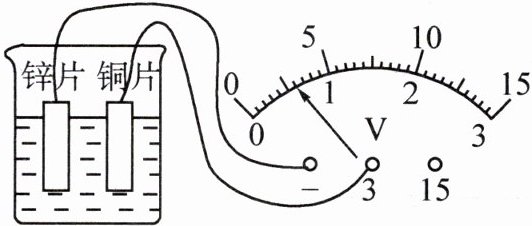 5. [2024·麦积区二模]如图所示,在烧杯中加入盐水,将铜片和锌片插入盐水中,这就组成了一个电池。观察电压表指针的偏转与接线可知:这个电池的电压为______V,______片是它的正极。