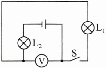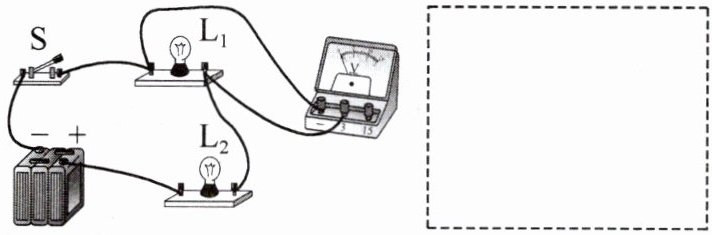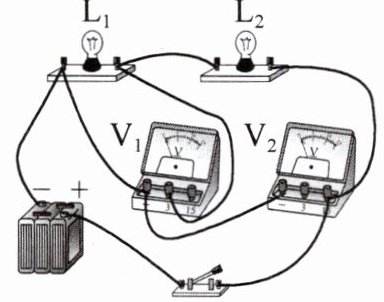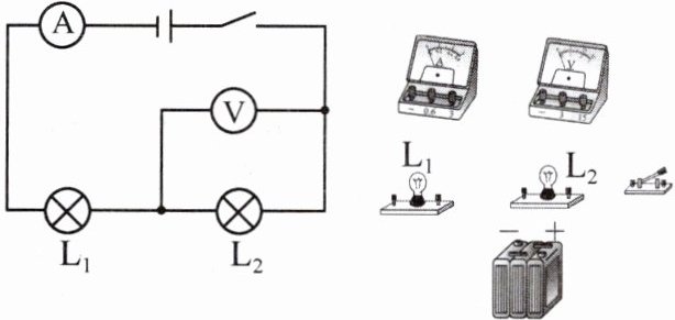 12. 在如图所示的电路中闭合开关后,L₁、L₂是______(填“并”或“串”)联连接,电压表V₁测的是______两端的电压,电压表V₂测的是______两端的电压。