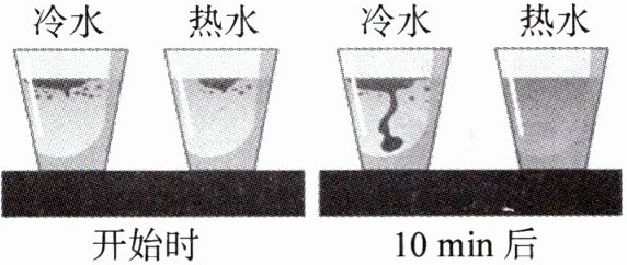 13. [2023·成都]把两滴墨水分别同时滴入盛有冷水和热水的两个玻璃杯中,实验过程及现象如图所示,分析可知物体的温度越高,分子的无规则运动越____。若将冷水倒掉一些,对比原来这杯冷水,杯中剩余冷水的内能____。