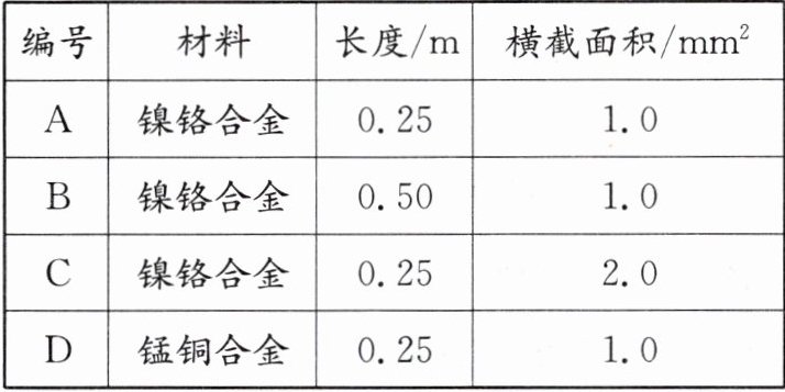 实验室提供了4根电阻丝,其规格、材料如表所示: