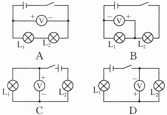4. 如图所示,能正确地测出小灯泡 L₁两端电压的电路是( )