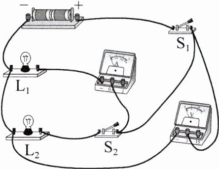 6. [2024·苍溪县模拟]在如图所示的电路中,闭合开关 S₁、S₂,小灯泡 L₁和 L₂均正常发光,电流表和电压表均有示数。下列关于该电路的说法正确的是( )