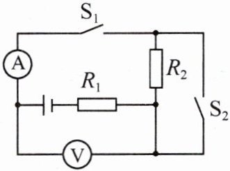 11. [2024·西城区期中]如图所示的电路,电源两端电压不变,$R_{1}$、$R_{2}$ 为定值电阻。只闭合开关 $S_{1}$ 时,电流表示数为 $I$,电压表示数为 $U$,电路总电阻为 $R$;再闭合开关 $S_{2}$ 时,电流表示数为 $I'$,电压表示数为 $U'$,电路总电阻为 $R'$。下列判断正确的是 ( )