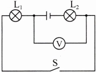 8. [2023·郴州]如图所示,电源电压恒为 $3\ V$。闭合开关 $S$,电压表的示数为 $0.5\ V$,则灯泡 $L_{2}$ 两端的电压为______$V$,灯泡 $L_{1}$ 与 $L_{2}$ 的电阻之比为______。