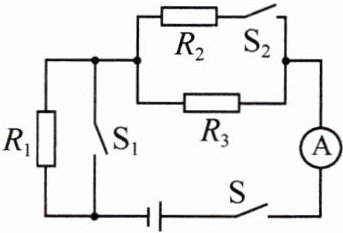 (2)①电阻 R₁、R₃ 烧坏,开关 S、S₁、S₂ 均闭合,此时电路中的电流为 0.1 A;②电阻 R₁、R₂ 烧坏,开关 S、S₁ 均闭合、S₂ 闭合(或断开),此时电路中的电流为 0.4 A。