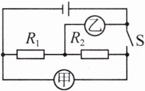 11. 如图所示,当开关$S$闭合,甲、乙两表为电压表时,两表的示数之比为$4:3$,则$R_{1}:R_{2}=$____;当开关$S$断开,甲、乙两表为电流表时,两表的示数之比$I_{甲}:I_{乙}=$____。