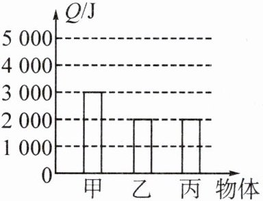 13. 甲、乙两物体质量都为$1kg$,丙物体质量为$2kg$,三个物体温度都升高$1℃$,吸收热量情况如图所示,则甲物体的比热容为______$J/(kg·℃)$,乙物体的比热容______(填“$>$”“$<$”或“$=$”)丙物体的比热容。