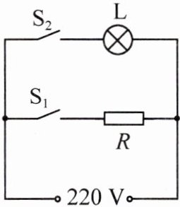 3. [2024·广东]某消毒柜具有高温消毒和紫外线杀菌功能,其简化电路如图所示。发热电阻R=110Ω,紫外灯L规格为“220V 50W”。闭合开关S₁和S₂,消毒柜正常工作,求: