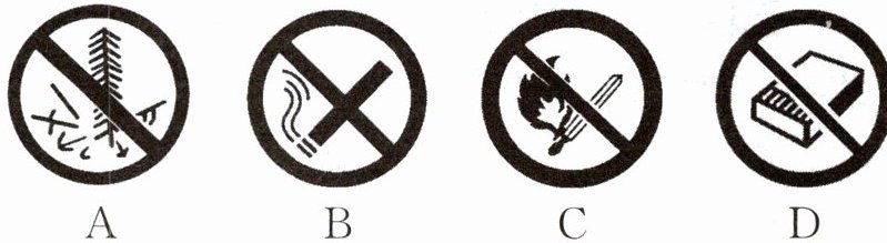 1. 为了防止失火造成生命财产的损害,加油站等场所常贴有下列图标,其中表示“禁止吸烟”的是 ( )