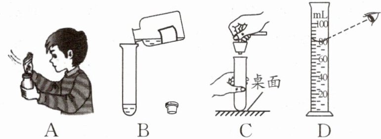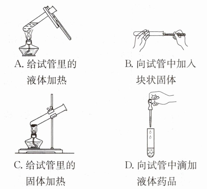 2. [2024·滨州]试管是实验中常用仪器,试管口朝向可能因实验的不同而不同。下列实验中试管口的朝向错误的是( )