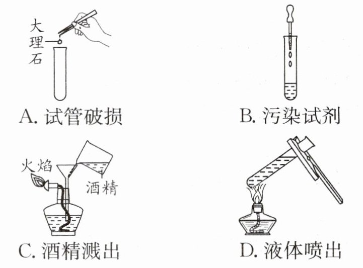 6. 在进行化学实验时,规范操作是实验中最基本的要求,是实验安全的保证。下列图示中的“错误实验操作”与“可能产生的后果”不一致的是( )