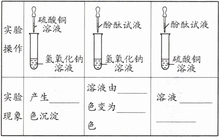 2. 试剂:氢氧化钠溶液、硫酸铜溶液、酚酞试液、稀盐酸、石灰石、氧化铜、硫酸铜晶体。