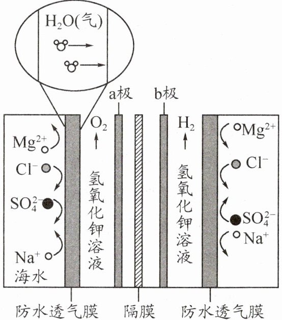 6. [2024·海南改编]我国科学家发明的无淡化海水直接电解制氢技术,利用防水透气膜将海水和电解槽隔离开,从根本上解决了海水杂质离子对设备的腐蚀问题,其工作原理如图所示。下列说法不正确的是( )