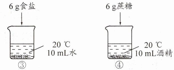 C. 能比较出食盐和蔗糖溶解性强弱的实验是③和④