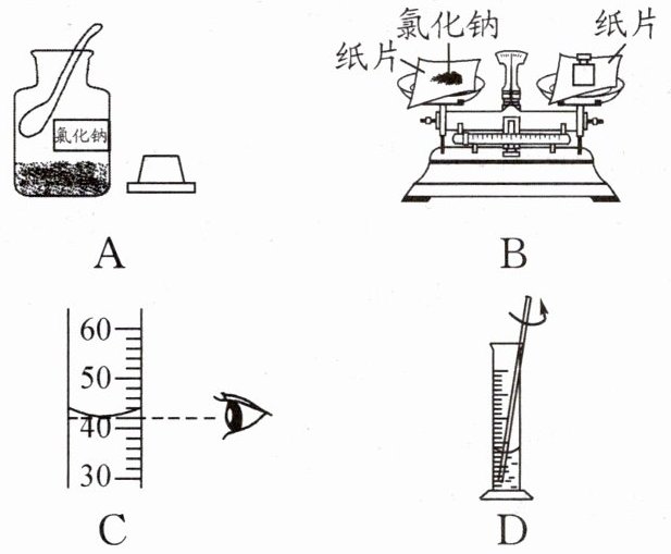 1. 实验室配制 50g 溶质质量分数为 16%的氯化钠溶液,下列实验操作错误的是( )